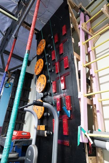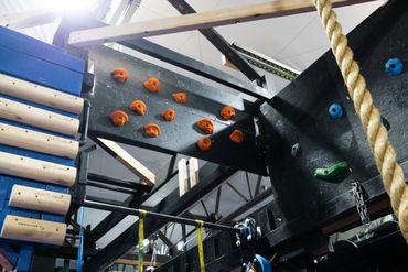 Our facility changes obstacles weekly. We strive to have a unique experience every time you join us. We do have a few obstacles that will always be available-salmon ladder, warped walls, devil steps, ring toss, rope climb, and peg boards
